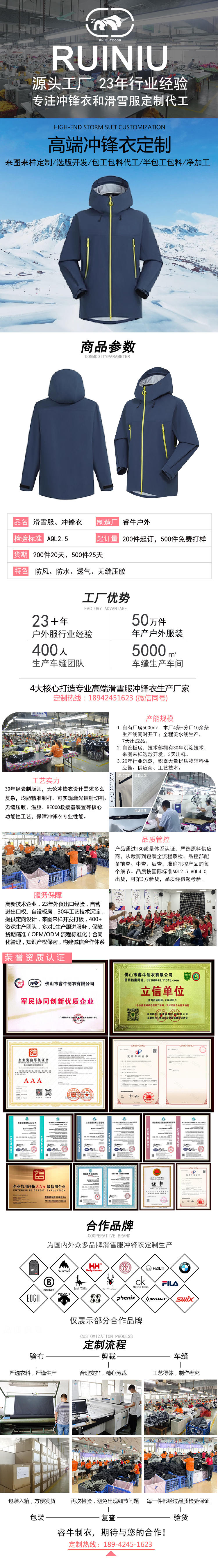 沖鋒衣加工廠來圖來樣定制代工防水壓膠沖鋒衣